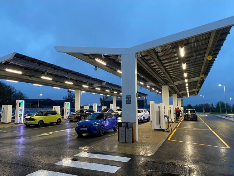 Motorvejs tankstationen er en international milepæl i udviklingen af E-mobilitet og et kompromisløst skridt i retning mod de nye klimamål. Tankstationen har 36 hurtigladere til elbiler. Alt el produceres bæredygtigt, primært af solceller fra solcellecarportene og fra solceller på friland. Elprisen er billig. Kun GBP 0,24 kr., som svarer til 2 kr. pr. kW. Der er til tankstationen både etableret et supermarked, en cafe, en EV-bilforretning og et fitnesscenter, hvor brugerne genererer el gennem motionscykler. Der er planlagt opførelse af 100 lignende tankstationer i England over en årrække, hvoraf 6 skal opføres i 2021.