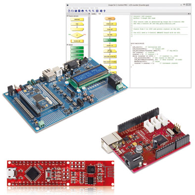 Flagskibsproduktet i C-Control PRO-familien er C-Control AVR32-Bit MCU’en. Ud over den opdaterede og forbedrede webserver-funktionalitet leveres produktet nu med en let anvendelig programmerings software kaldet ”Grape”, som tillader let implementering af ideer med et grafisk flowchart. Under grafisk programmering vises de grafiske symboler sammen med den relevante C-kode. Det letter en præcis kontrol over systemkommunikationen og er et fremragende værktøj for hurtigt at blive bekendt med det højere programmeringssprog ”C”.