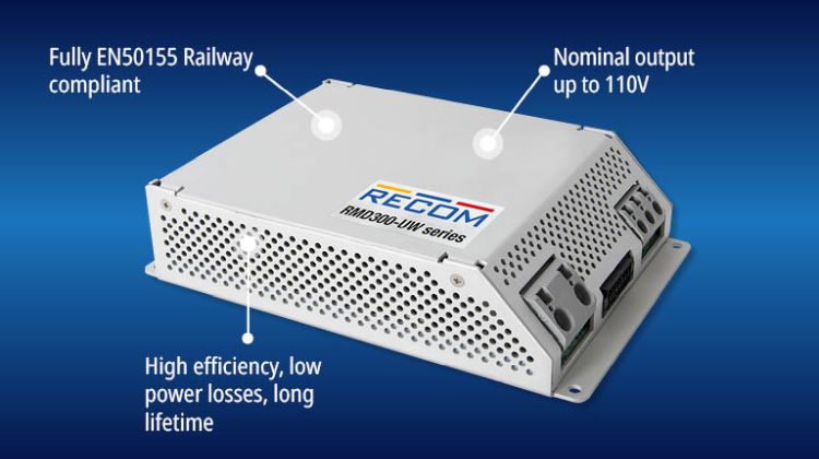 Recom har udvidet sit 300W jernbane DC/DC-sortiment med den omkostningseffektive RMD300-110-110SUW-model, der har en fuldt reguleret 110 V DC-udgang. Indgangsområdet er ultrabredt 12:1 eller 16,8 V til 137,5 V, for at dække alle almindelige nominelle jernbanespændinger over hele verden, med fald og stigninger i henhold til standard EN 50155. Drift er tilladt til 14,4V i 100ms og til 170VDC i tre sekunder, og hold-up på minimum 10ms er også inkluderet over hele indgangsområdet, for at give mulighed for forsyningsudfald uden tab af funktion.
