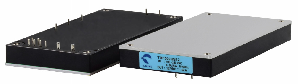 AC/DC-konverteren, TBF500 fra P-Duke, yder 500W. Power Technic forhandler konverteren der har AC-indgangsspænding på 85-264VAC og DC-indgangsspænding på 88-370VDC. TBF500, har enkeltudgang og udgangsspændinger på 12VDC, 15VDC, 24VDC, 28VDC, 48VDC og 54VDC. Den er justerbar +-10 procent. Serien har strømdelingsfunktion på op til tre enheder.