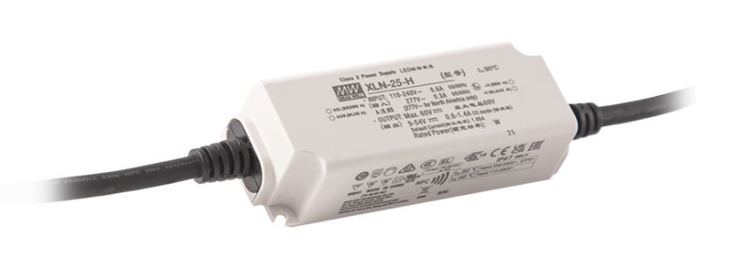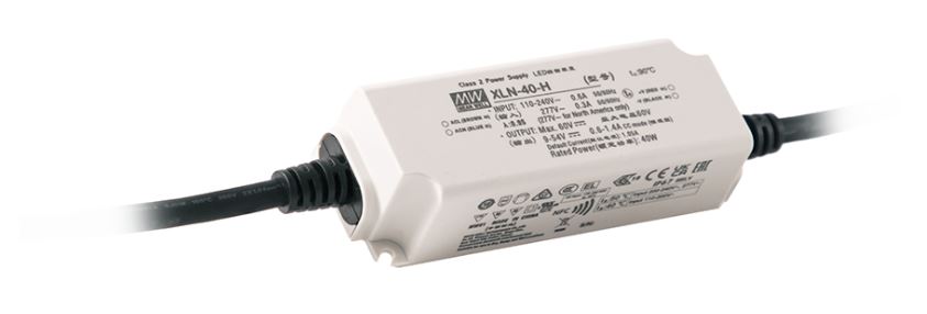 Udgangsstrømmen på 25W-typen kan justeres fra 300mA og 1050mA, hvor udgangsstrømmen på 40W-typen kan justeres fra 600mA og 1400mA, begge med NFC. Effektiviteten på XLN-serien i 25W og 40W er op til 88 procent.