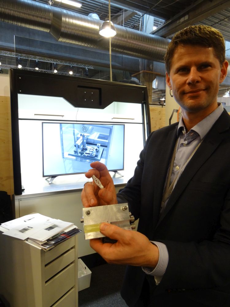 På Technomania-afsnittet, der var IDA’s sektor for innovative løsninger under dette års HI Tech & Industry, faldt vi ganske tilfældigt over en nystartet dansk virksomhed, der er gået i luften blandt andet i samarbejde med Nextech i Kolding. Virksomheden hedder Addifab, og den danske virksomheds teknologi må uundgåeligt have en stor fremtid på verdensmarkedet. Efter vores bedste vurdering er ideen fuldstændig ny. Den vender også 3D-printteknologien helt på hovedet og åbner døren for en rationel volumenproduktion af ”umulige emner”, som blandt andet elektronikbranchen (høreapparater, medico, småmotorer og lignende emner) kan få stor glæde af.