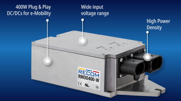 Recom har udvidet udvalget af omkostningseffektive, regulerede DC/DC-omformere til mobilitetsapplikationer med modeller, der er klassificeret til 400W output. RMOD400-28-13SW har et bredt 16,8V til 56V indgangsområde med 13V udgang, RMOD400-60-24SW fungerer fra 33,6 til 96V (125V peak) indgang med 24V udgang, og RMOD400-80-13SEW har et ultrabredt, kontinuerligt indgangsområde på 33,6 til 125V med en 13V udgang.