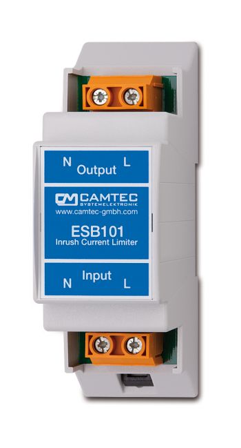 ESB001 fra Camtec er en enhed til at begrænse startstrømmen fra switch mode strømforsyninger, for eksempel LED-drivere. Power Technic forhandler ESB-serien, der monteres mellem automatsikringer og switch mode strømforsyninger, for at undgå at automatsikringen slår utilsigtet fra.