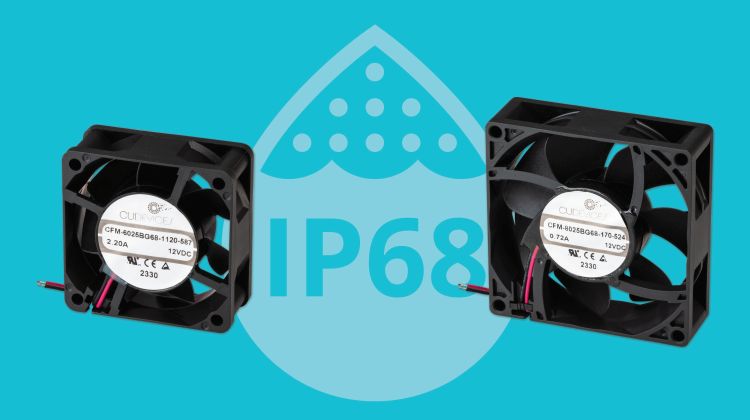 CUI Devices’ Thermal Management Group tilføjer nu en række blæsere i IP68-tæthedsklassen til sit program af aksiale DC-ventilatorer. Disse vandtætte DC-blæsere giver fuld beskyttelse mod indtrængende fugt og partikler, hvad der gør blæserne perfekte til hårde miljøer som kølemontrer, HVAC-installationer, medicoteknik og meget mere.