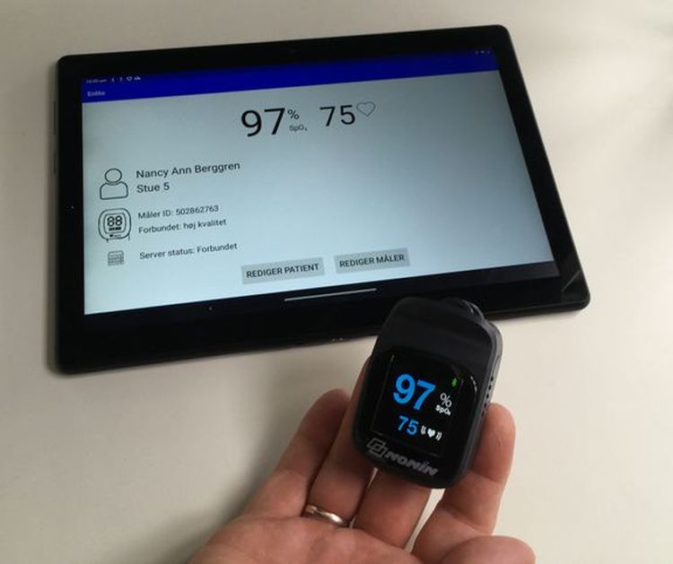 Løsningen hedder Enlito og fungerer ved, at en måler, der sidder på patientens finger, konstant sender data til en tablet, som ligger ved patientens seng. Tabletten sender data videre til en server og vises på en skærm uden for isolationsstuen. Her kan personalet se alle patienter, der er koblet på systemet, og via op- og nedadgående pile kan de udover den aktuelle værdi også følge udviklingen over tid i forhold til patienternes iltmætning.