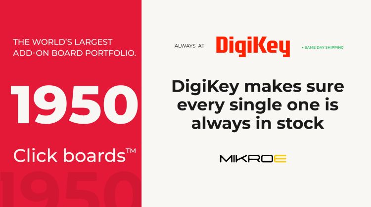 MIKROE fortæller, at hele virksomhedens portefølje af Click boards nu bliver lagerført globalt af DigiKey. De kompakte klik add-on boards til funktioner som sensorer, konnektivitet, effekt, displays og interfaces gør designere i stand til hurtigt at udvikle proof-of-concepts for efterfølgende prototyping og kodning af komplette nye, embeddede projekter.