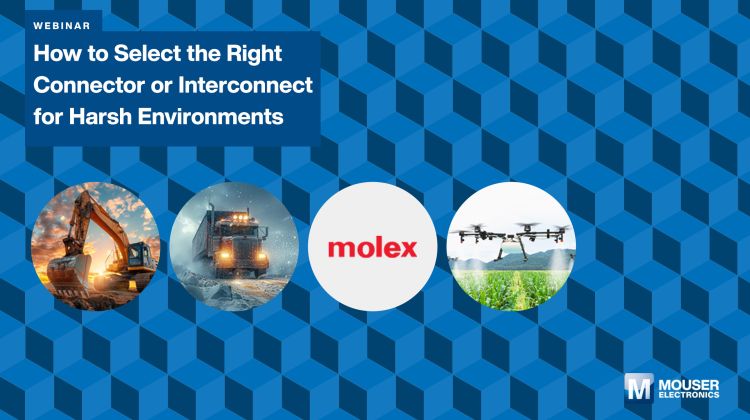 Mouser Electronics, Inc. har slået sig sammen med Molex for at give det samlede designer community et nyt webinar med titlen “How to Select the Right Connector or Interconnect for Harsh Environments”. Dette webinar er gratis at deltage i og finder sted 14. oktober, 2025, 16:00 CET.