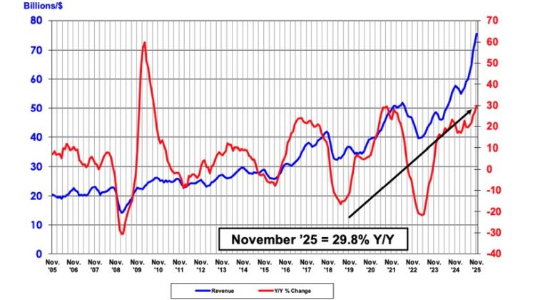 Brancheorganisationen Semiconductor Industry Association (SIA) annoncerer, at det globale halvledersalg udgjorde 75,3 milliarder dollars i november 2025, en