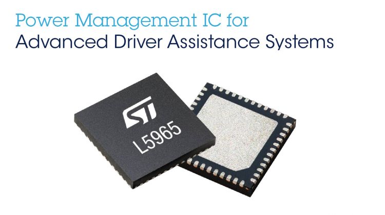The STMicroelectronics L5965 seven-output automotive power-management IC (PMIC) enables more compact and reliable electronic control units for automotive-vision systems and other in-vehicle applications, leveraging direct operation from battery voltage with register-programmable output voltages and sequencing and integrated functional-safety mechanisms.