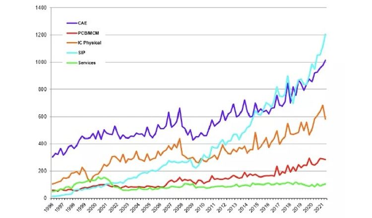 – Omsætningen for fysisk design og verifikation af IC’er faldt med 2,6 % til 777,2 millioner USD. Det glidende gennemsnit for fire kvartaler for kategorien faldt med 5,1 %.