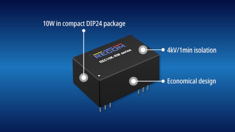 REC10K-RW serien af indkapslede DC/DCs omformere, der netop er blevet lanceret af Recom, byder på en 4:1 wide input rækkevidde (9-36V og 18-75VDC) samt et udvalg af regulerede single og dual outputs, så alle de grundlæggende krav er dækket. Hele 10W stilles til rådighed op til mindst 60°C i omgivelserne, afledt til 100°C.